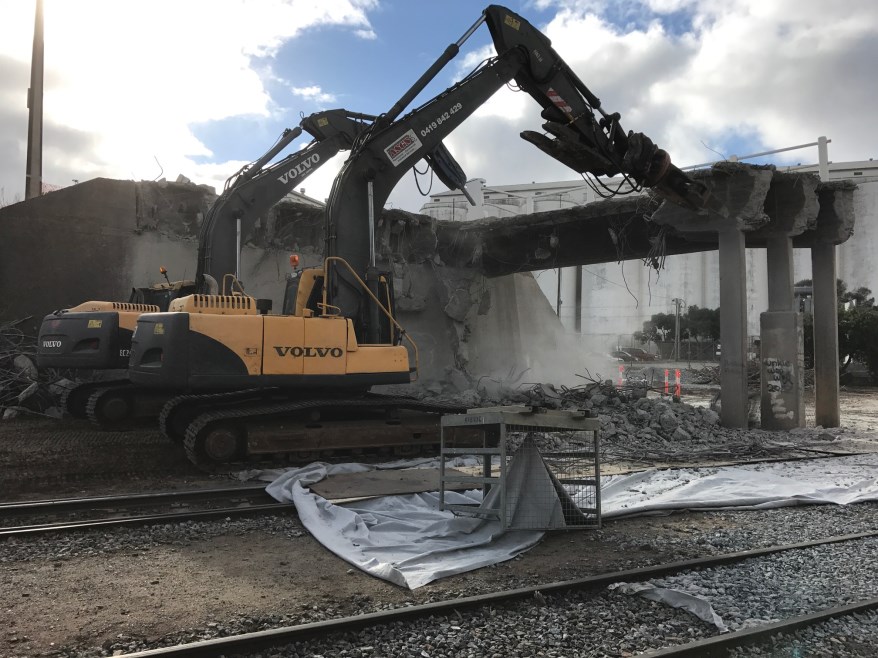 The scope of works included the complete demolition of the bridge, carried out within the strict constraints of active train operating schedules. Our team managed the removal and off-site disposal of over 2,000 tonnes of concrete, ensuring all materials were handled safely and responsibly. In addition, we completed a thorough site clearance, removing surrounding fences, pits, and stobie poles to prepare the area for future development.